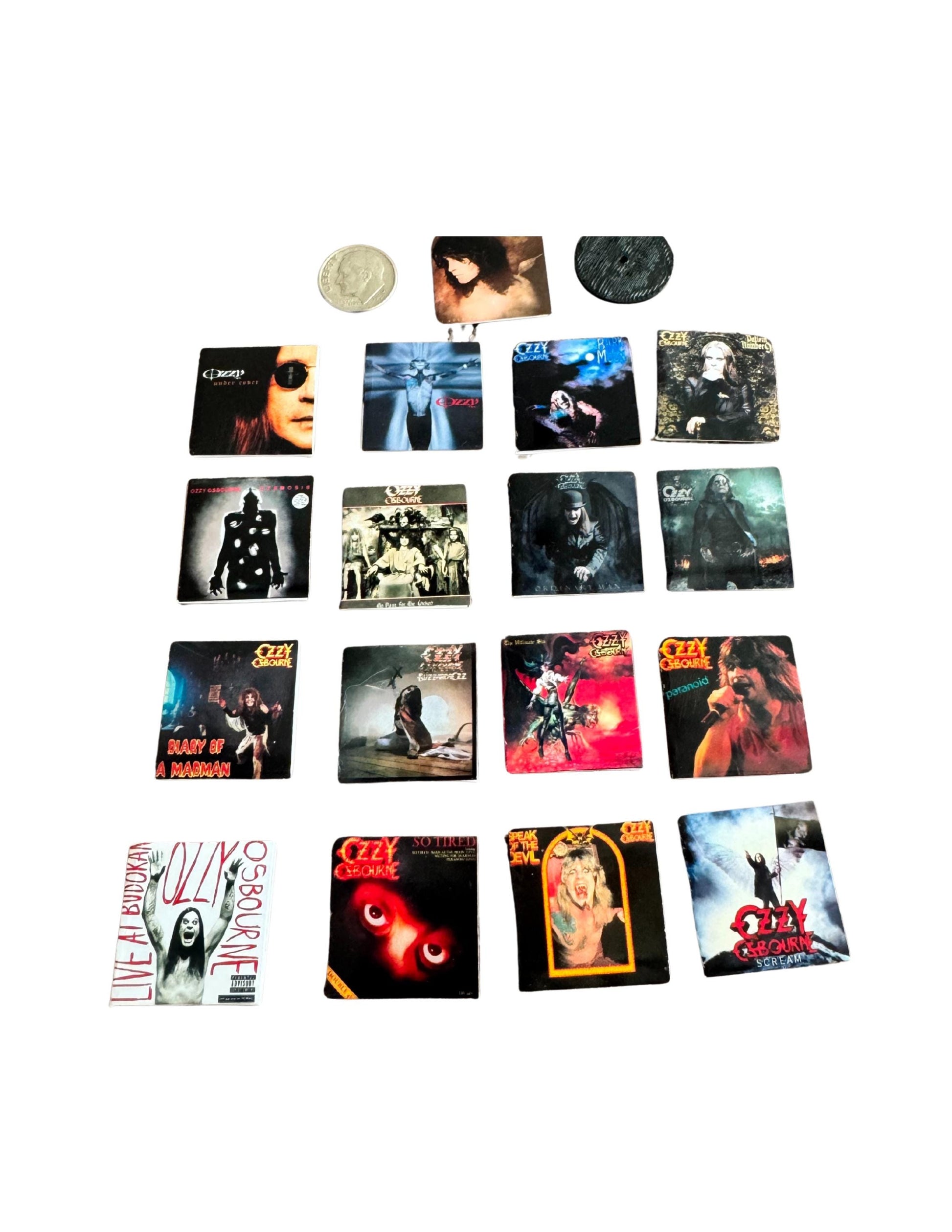 Rock out in miniature with these handmade Ozzy Osbourne vinyl records—perfect for dollhouse collectors, music lovers, or fans of the Prince of Darkness himself!